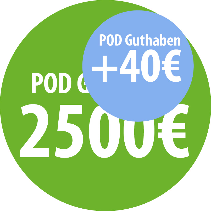 Zahlungsbedingungen: Bitte habe Verständnis dafür, dass wir jegliches POD Guthaben nur über Rechnung und direkte Banküberweisung abwickeln, da ansonsten die hohen Transaktionskosten, z.B. von Paypal auf euch umgelegt werden müssen. Im Gegenzug gibt es ein extra Guthaben für das Aufladen (je mehr du auflädst umso mehr Zusatzguthaben erhältst du)…