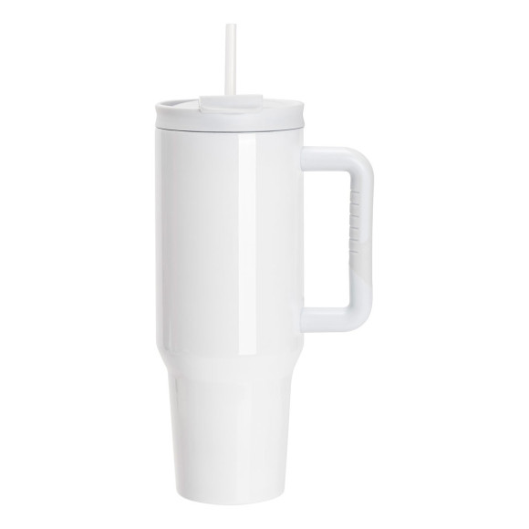 Dieser Sublimation 40oz Edelstahl-Thermobecher bietet mit einem Fassungsvermögen von 1,2 Litern genug Platz für deine Lieblingsgetränke. Der weiße Edelstahlbecher ist doppelwandig und vakuumisoliert, sodass dein Getränk über längere Zeit warm oder kalt bleibt. Mit dem praktischen Flip-Deckel und Trinkhalm kannst du bequem trinken, ohne dass etwas verschüttet wird. Der gummierte Kunststoffgriff in grauer-weißer Farbe sorgt für einen sicheren und angenehmen Halt.